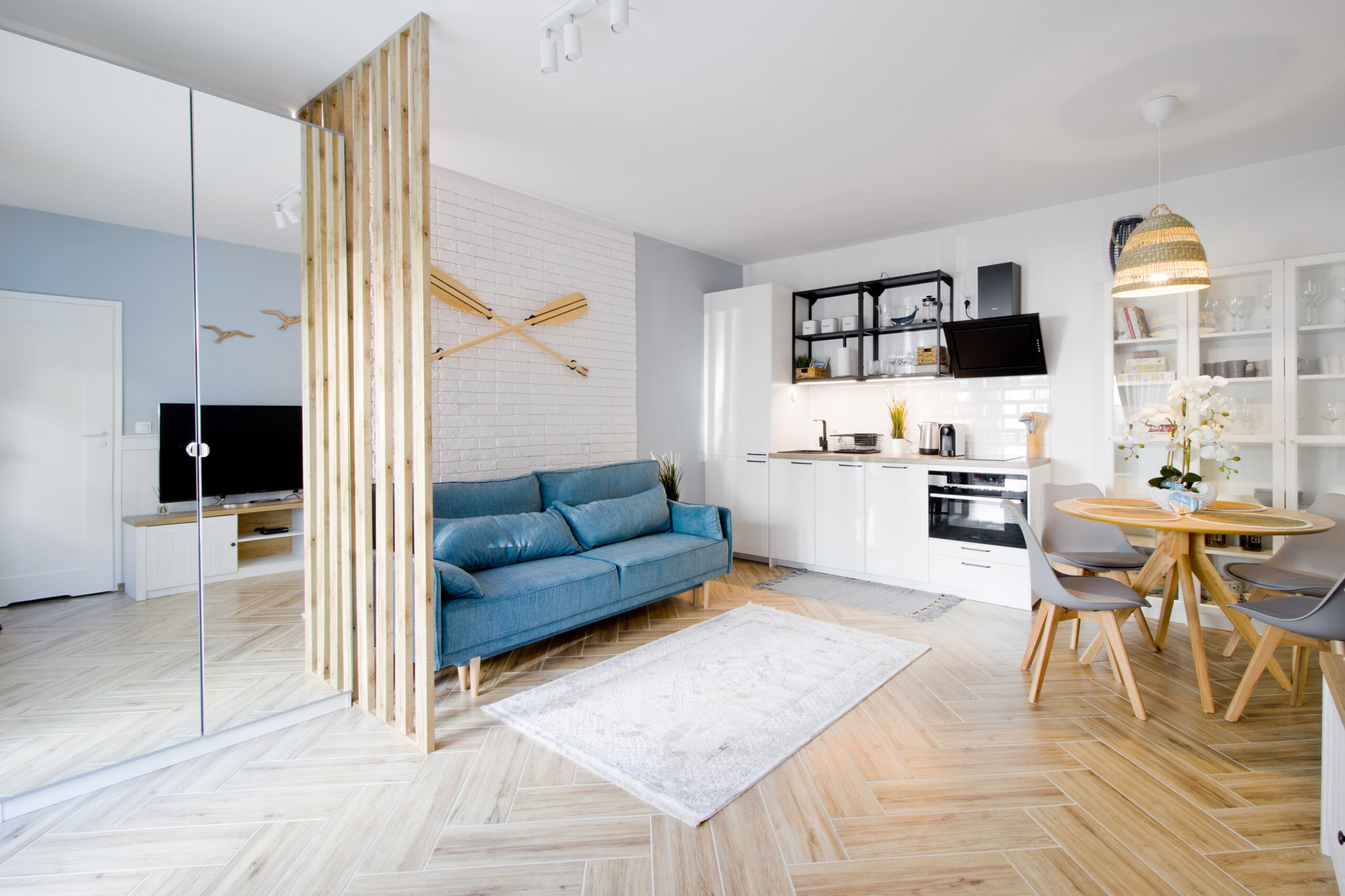 Mieszkanie zostało urządzone z najwyższej jakości materiałów i z dbałością o najmniejsze detale.