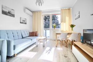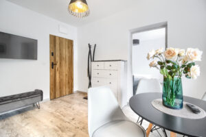 Nowoczesne, minimalistyczne wnętrze które od razu polubili nasi Goście. Jest to jedno z tych mieszkań, które najczęściej jest odwiedzane przez pary lub rodziny z jednym lub dwójką dzieci.