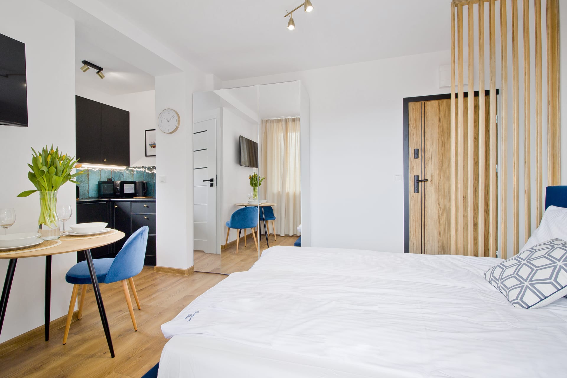 Mieszkanie już od progu zachwyca lekkością i wysokiej jakości wykończeniem. Jest jasne i mimo niewielkiego rozmiaru, niezwykle funkcjonalne.