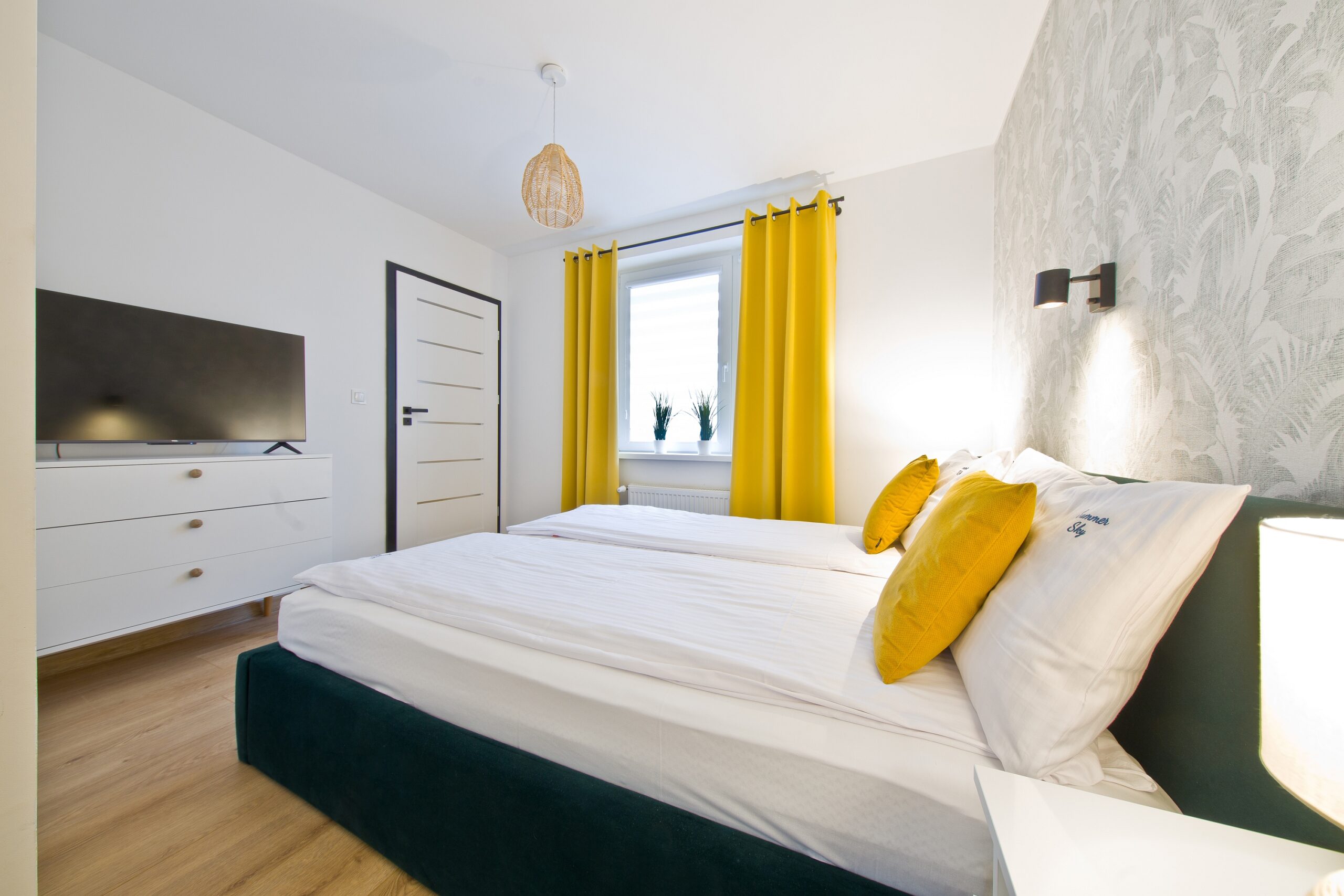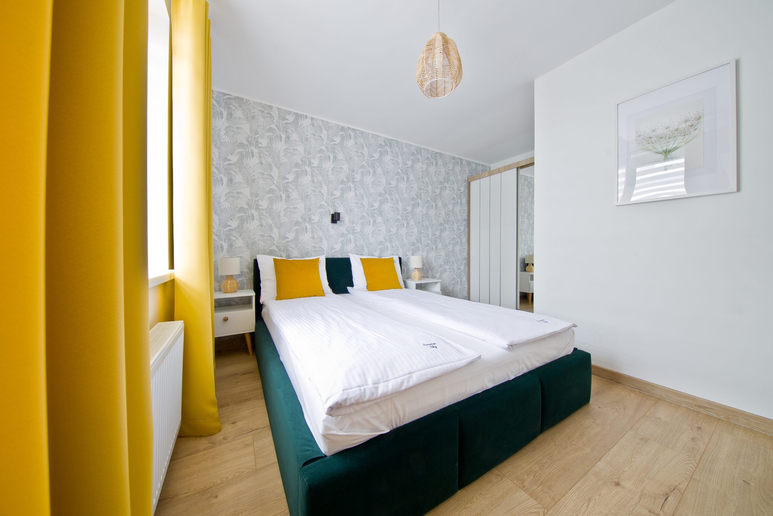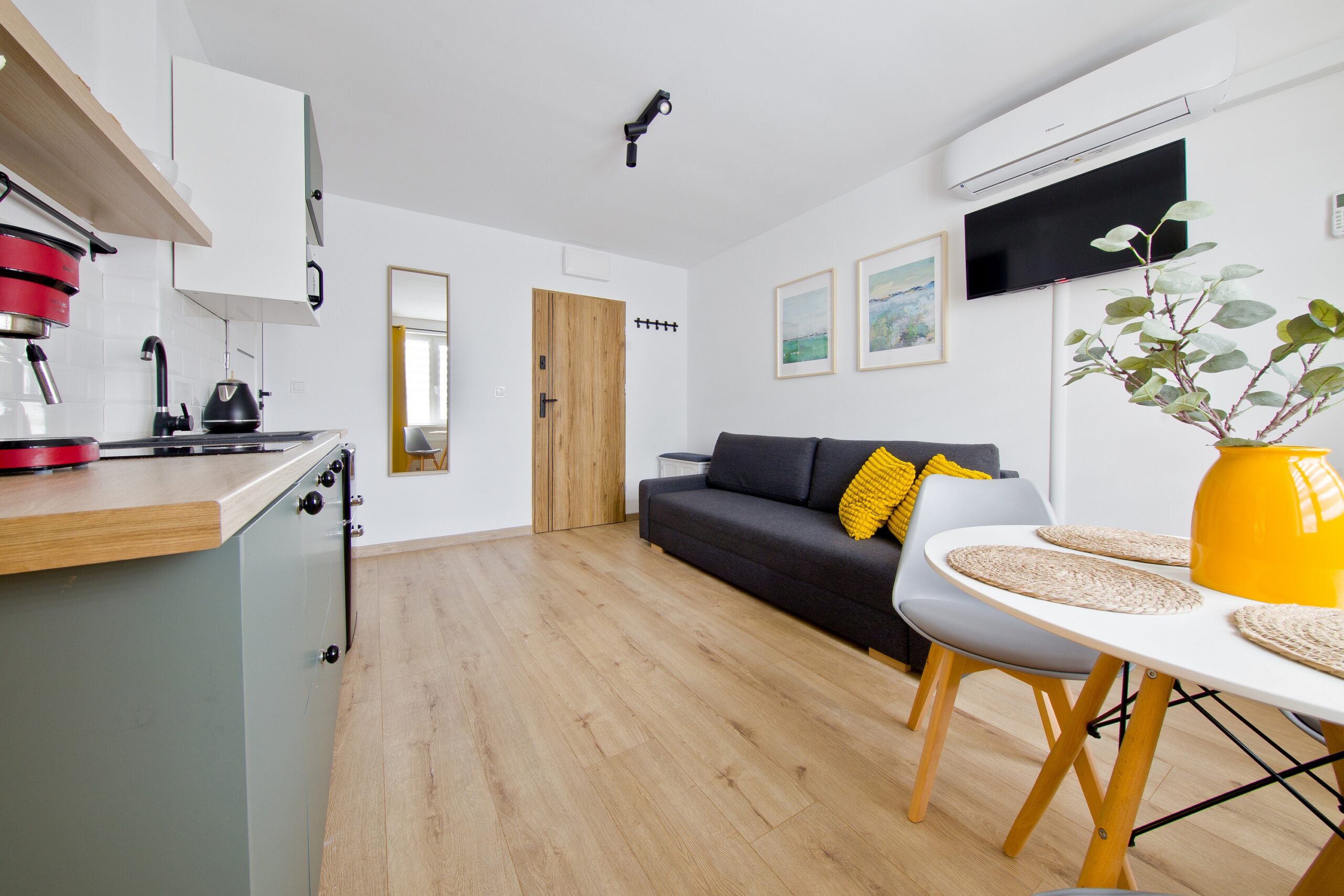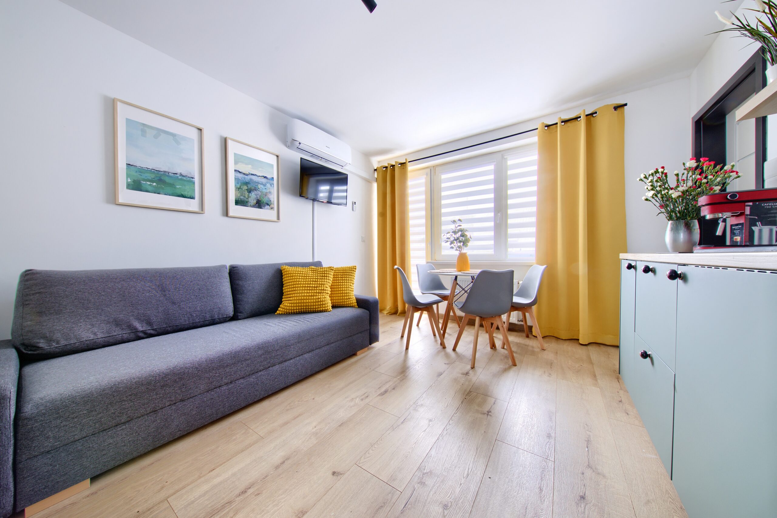 Apartament posiada 2-osobową sypialnię z podwójnym łóżkiem , telewizorem LED oraz przestronną szafą. W salonie znajduje się wygodna przestrzeń do odpoczynku z rozkładaną dwuosobową sofą i telewizorem oraz strefa jadalniana ze stołem oraz krzesłami. Mieszkanie jest klimatyzowane.