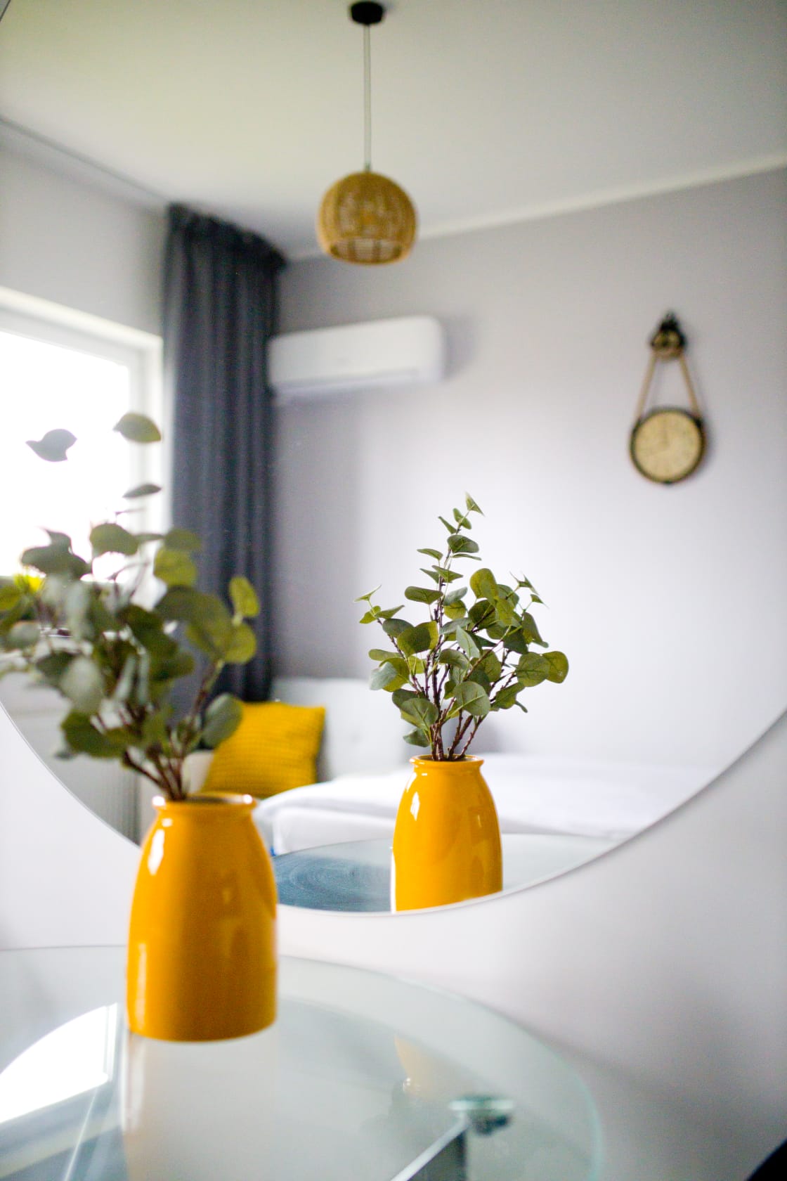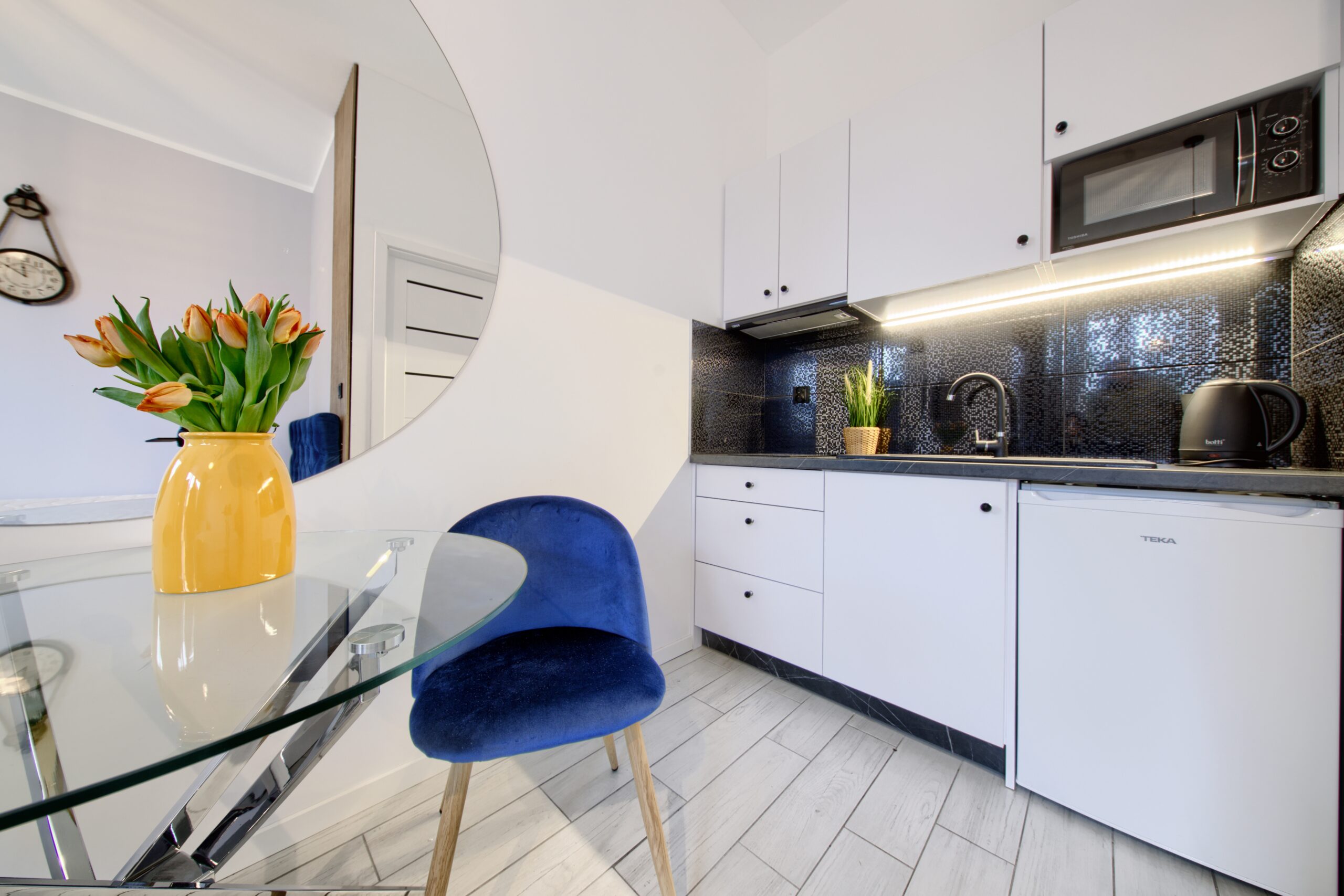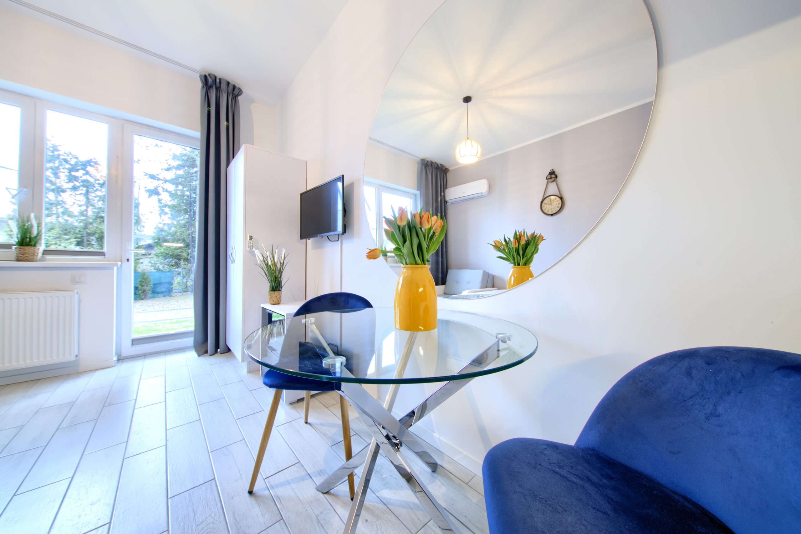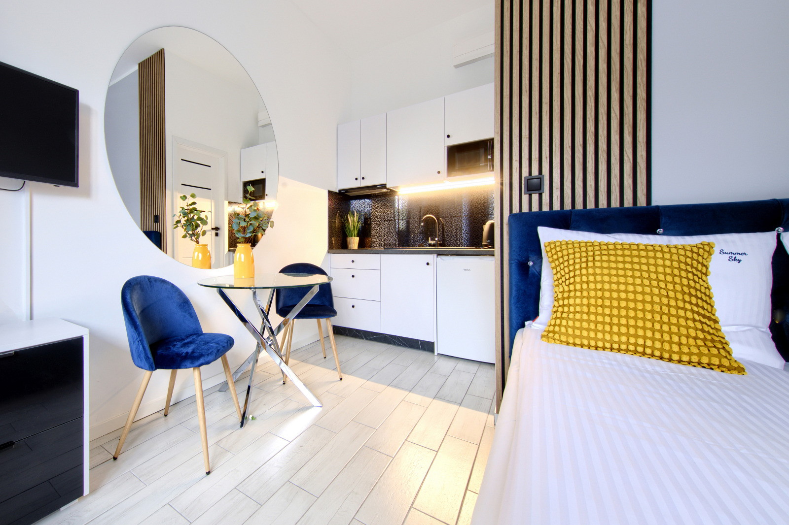 Apartament B2 to niewielkie, ale niezwykle klimatyczne mieszkanie typu studio urządzone w nowoczesnym i przytulnym stylu. Mimo małego rozmiaru, jest bardzo funkcjonalny i został doskonale wyposażony, pozwalając na komfortowy pobyt dla 2 osób lub rodziny z małym dzieckiem.