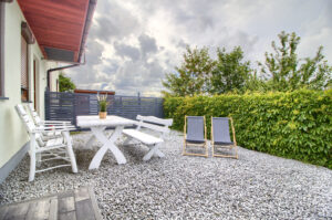 Apartament jest zlokalizowany w spokojnej okolicy Sarbinowa przy ulicy Bałtyckiej. Posiada własne niezależne wejście oraz prywatny ogródek w którym znajduje się stół z krzesłami oraz leżaki.