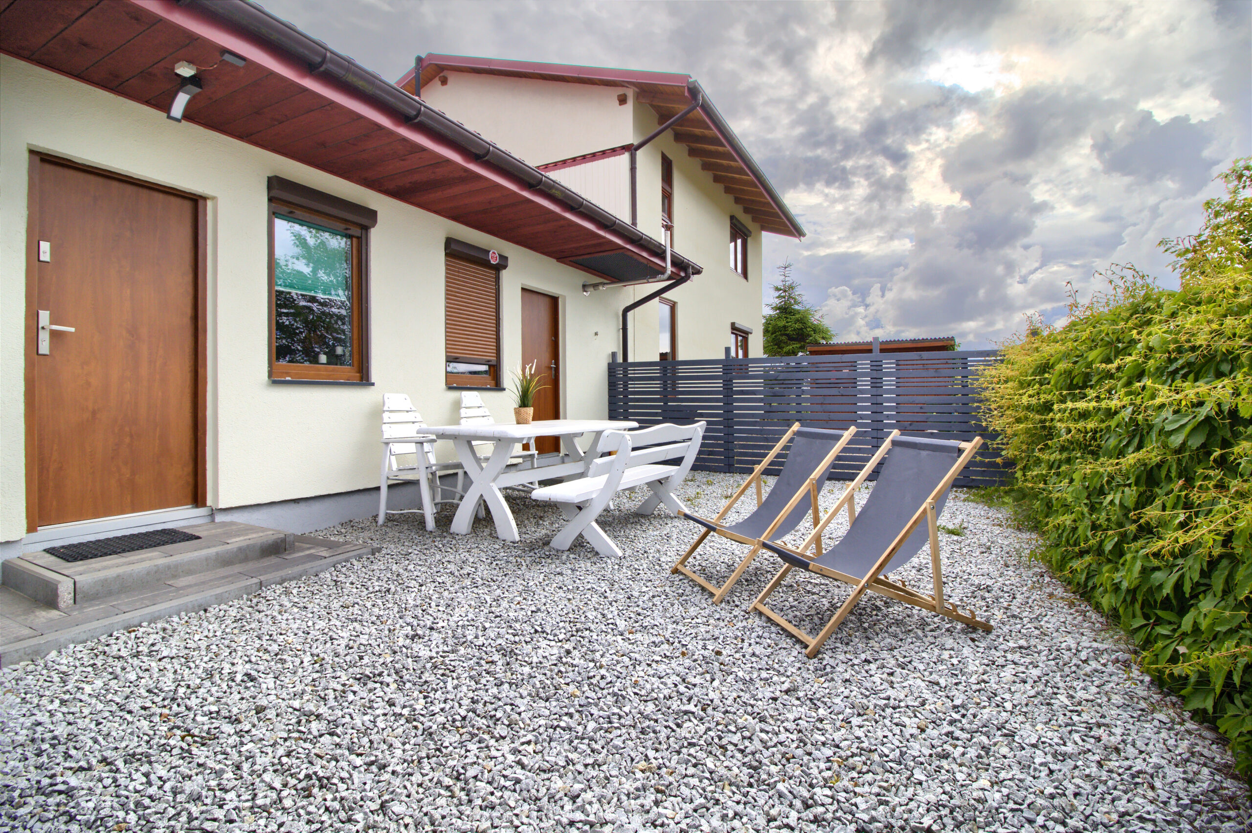 Apartament jest zlokalizowany w spokojnej okolicy Sarbinowa przy ulicy Bałtyckiej. Posiada własne niezależne wejście oraz prywatny ogródek w którym znajduje się stół z krzesłami oraz leżaki.