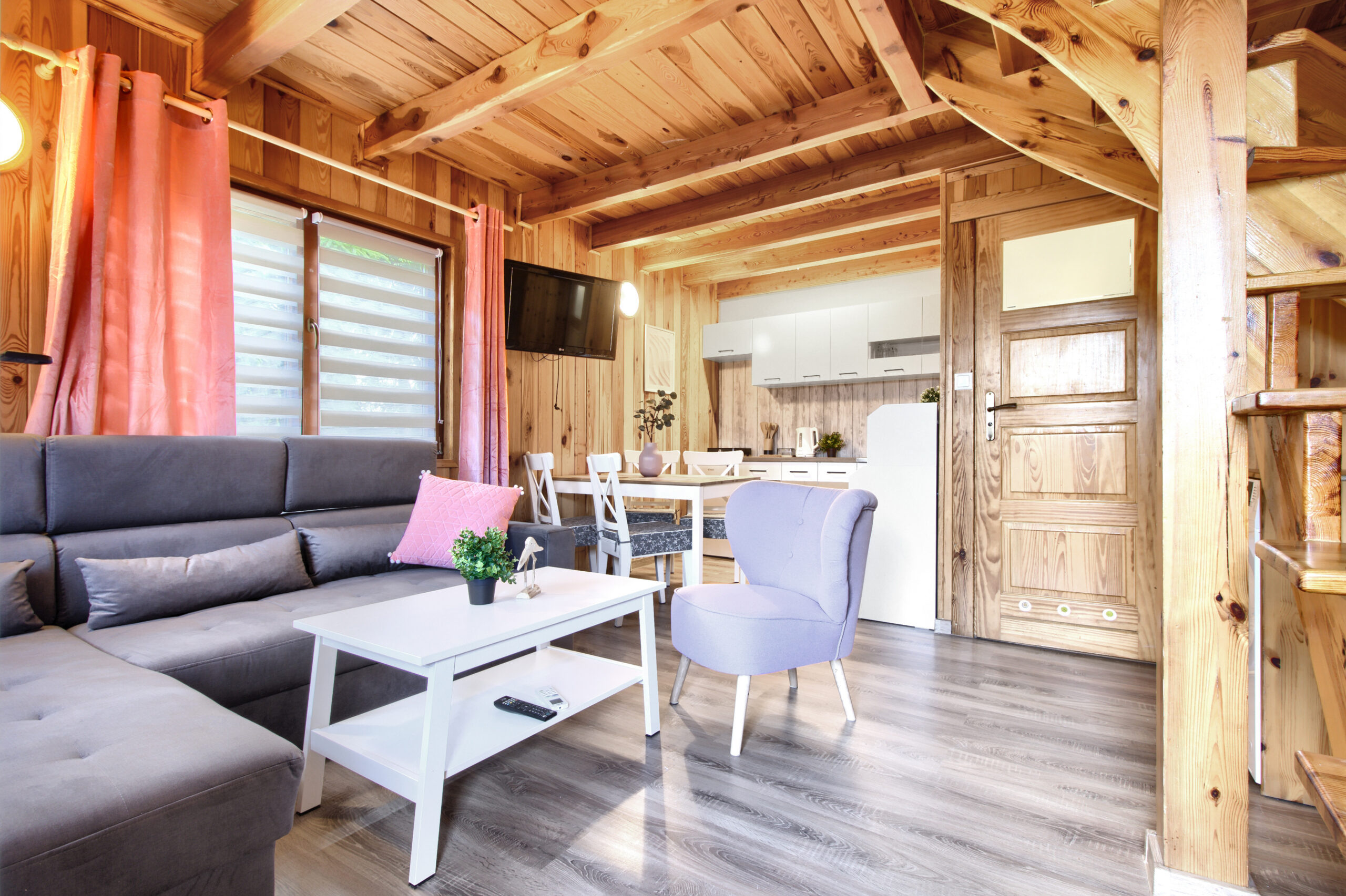 Domek letniskowy to niezwykle przytulne, komfortowe wnętrze wprost idealne do odpoczynku w ciszy i spokoju.